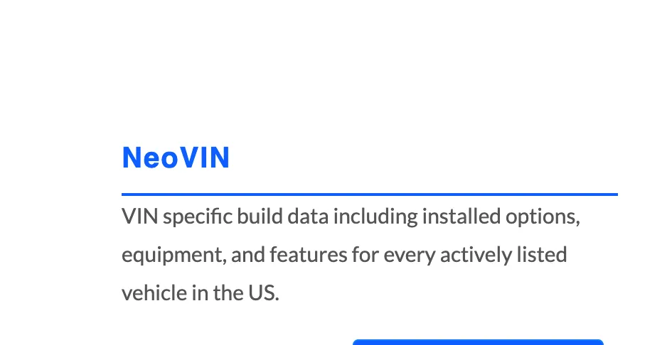 Why NeoVin and why now? Simply put, traditional VIN decoders often only provide surface-level information. This causes marketers and dealerships as a whole to deal with major gaps in their information. At MarketCheck, we recognized this gap and set about creating a way to address it: a way to provide granular, VIN-specific data that goes far beyond the basics.